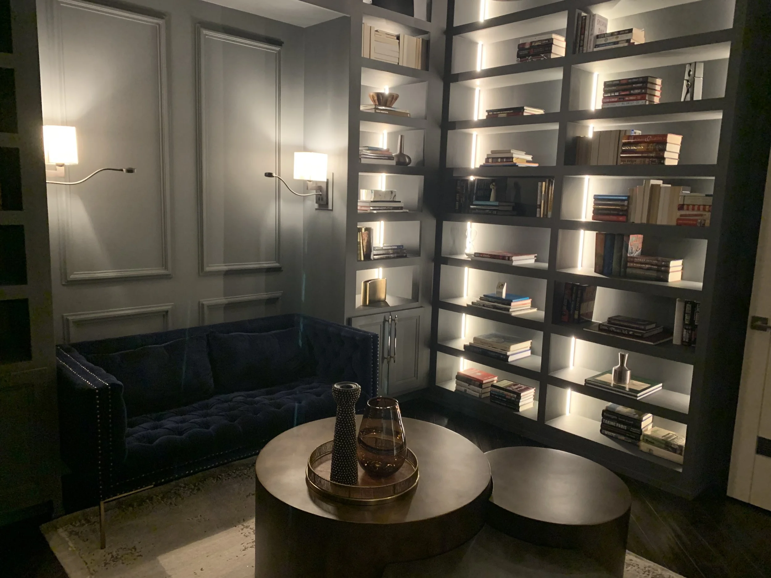 This lounge and library offers a warm, inviting retreat where comfort meets sophistication. Rich wooden shelving lines the walls, filled with an eclectic collection of books, while plush seating and soft lighting create the perfect environment for reading, reflection, or quiet conversation. Thoughtfully arranged accent tables and subtle decorative touches provide both function and style, encouraging guests to linger. The space blends timeless elegance with cozy charm, making it an ideal haven for relaxation, study, or intimate gatherings.